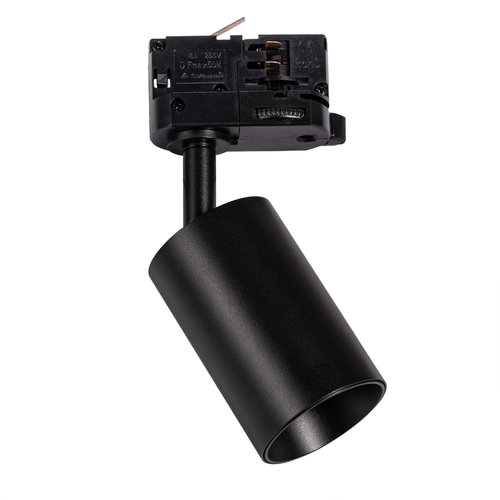 Proiettore da binario orientabile con attacco GU10, finitura nera, IP20, perfetto per installazioni interne moderne e illuminazione direzionata